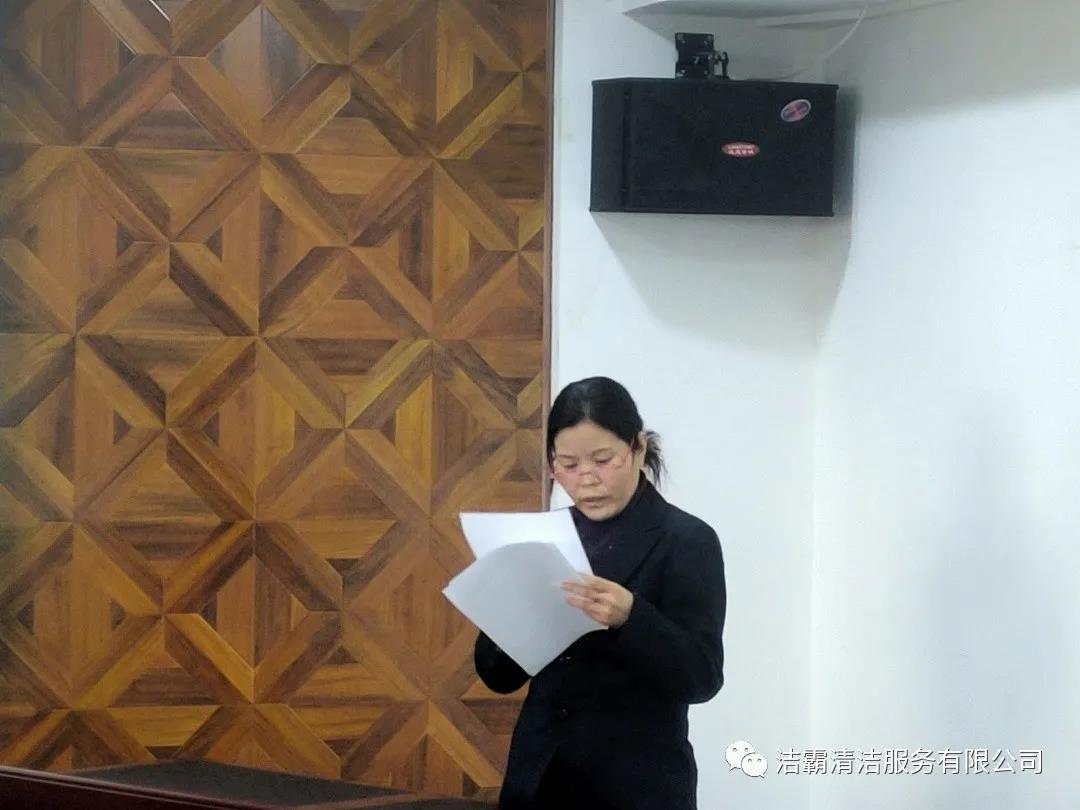 山西潔霸物業(yè)管理有限公司經(jīng)理李廣忠、會計(jì)張青霞、出納王頓花、晉城市合眾力勞務(wù)派遣有限公司經(jīng)理成濤、出納劉雨星、晉城市潔霸清潔服務(wù)股份有限公司工程部文員張陽楠、綜合辦公室車輛管理員呂衛(wèi)東、人力資源部文員呂利清、山西百潔物業(yè)服務(wù)有限公司出納王笑依次上臺作了述職匯報(bào)。