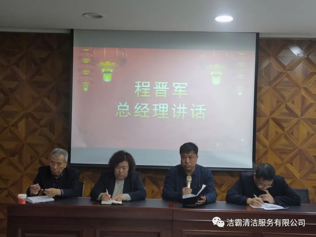 最后,公司總經(jīng)理程晉軍作了重要講話,對新的一年里組織架構(gòu)、產(chǎn)教融合、建立洗衣廠、創(chuàng)建勞務(wù)品牌、建立大運(yùn)營中心、工程部市場化運(yùn)作、技能培訓(xùn)、提高用工人數(shù)、承包養(yǎng)老院、建立客戶管理系統(tǒng)等十項(xiàng)工作作了安排部署并提出了新的希望。