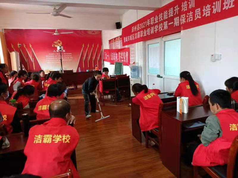 日前,由潔霸培訓(xùn)學(xué)校承辦的澤州縣人社局2021年全民技能提升培訓(xùn)第一期保潔員培訓(xùn)班在犁川鎮(zhèn)犁川村村委正式開班。