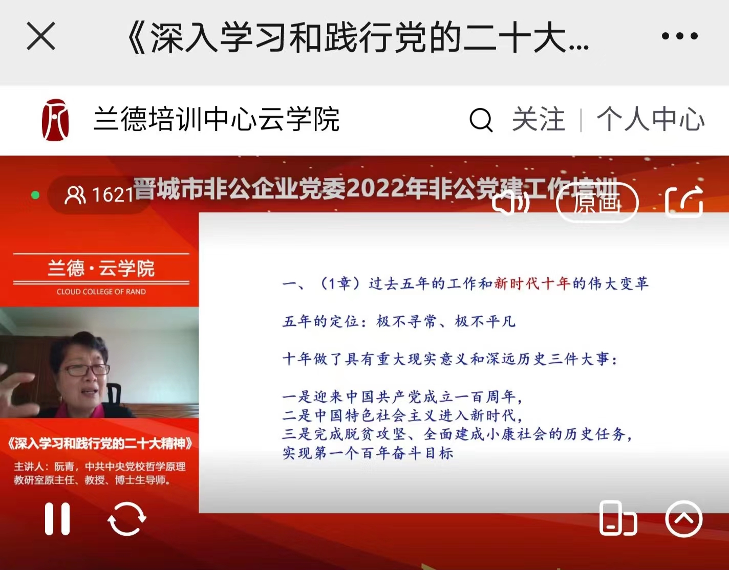 根據(jù)市非公企業(yè)黨委的安排,11月23日上午,公司黨支部組織全體黨員和入黨積極分子收看了市非公企業(yè)黨委2022年非公黨建工作培訓(xùn),聆聽了中央黨校哲學(xué)原理教研室原主任、教授、博士生導(dǎo)師阮青主講的《深入學(xué)習(xí)和踐行黨的二十大精神》。
