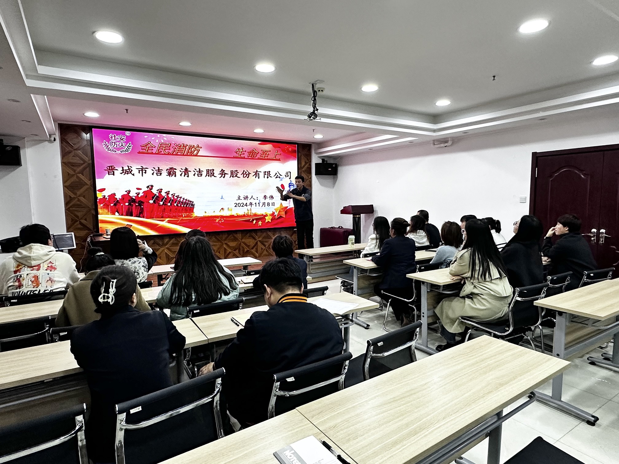 今年11月9日是第33個(gè)“全國消防安全宣傳教育日”。8日晚,公司舉辦“119”消防宣傳月主題培訓(xùn),邀請社安防火的李偉老師進(jìn)行授課。公司近30名管理人員參加培訓(xùn)。